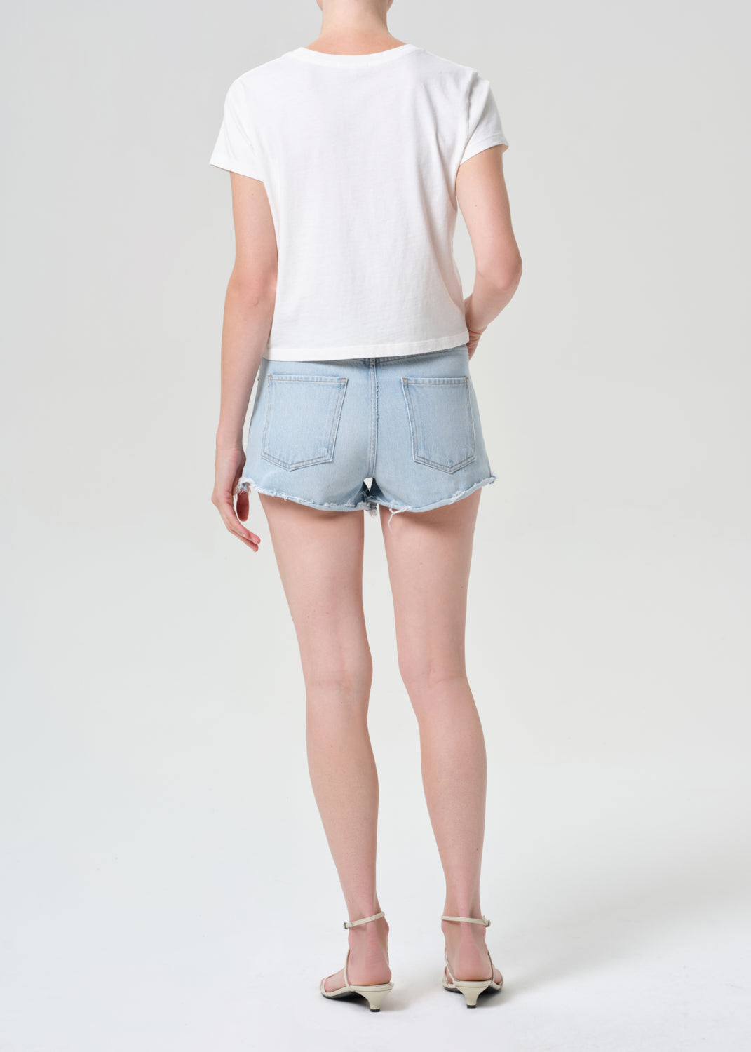 Looks Like: Pale bright indigo denim short